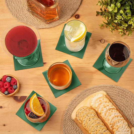 Paper Cocktail Napkins - Linen-Like Disposable Beverage Bar Napkins 4.75" X 4.75" - Bulk Square Napkins - Ideal for Party or Wedding (Green -100 Count)
